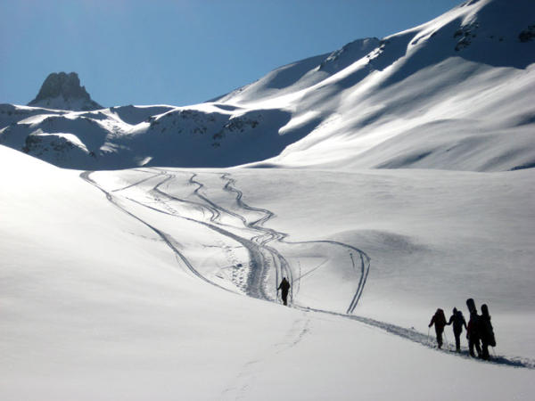 Ausgezeichnete Verhältnisse mit ausreichend Schnee im ganzen Gebiet; Gipfelcouloir Spitzmeilen mit guten Tritten, ein Pickel ist trotzdem hilfreich. Querung vom Sattel zum Couloir-Einstieg ist möglich, erfordert aber etwas Vorsicht (Triebschnee). Abfahrt nach Engi bis zur Busstation bzw. Beiz möglich.