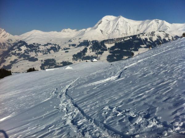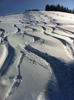 Die Abfahrt zur Dürewaldbrücke bietet noch Superpuder und ein bisschen Platz für neue Wedeleien.