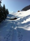 Oberhalb der Alphütten auf Flösch Windverwehungen, unterhalb ein Wahnsinnspulver.