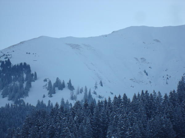 Grosse Lawinenzüge in der Flanke von Drunegalm aus den letzten Tagen.
