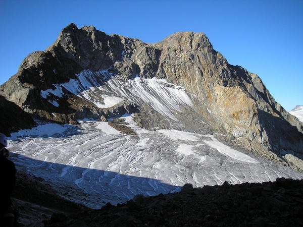 Gletscher stark ausgeapert. Grat ist an ein paar Stellen etwas bruechig. Meist jedoch sehr guter Fels (im Aufstieg). Abstieg am Besten mit Huettenpersonal besprechen.