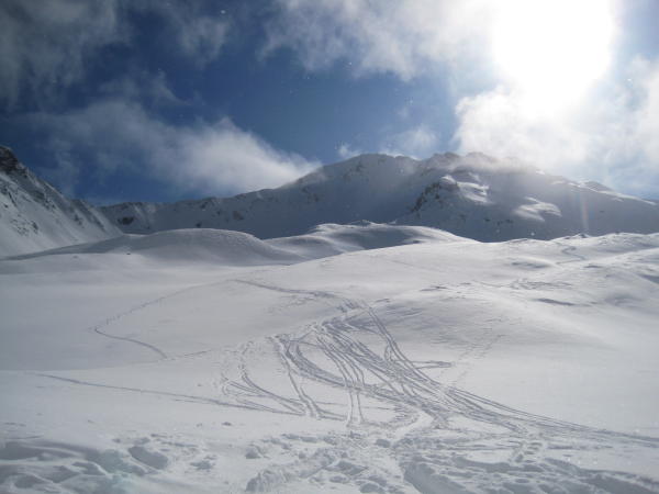 Ab Bütschihütte grossflächig windgepresster Deckel mit einigen recht passablen Pulverhängen. Auch ist der Schlusshang im Aufstieg wie bei der Abfahrt kein Vergnügen!