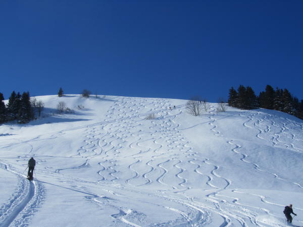 bis auf die ersten 100 Höhenmeter noch guter Pulverschnee.vom Gipfel bis Gamperneyhütte noch wenig verspurt!