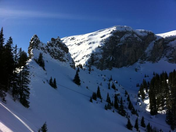 Morgen So, 19.2.11 erreicht von NW eine Kaltfront die Schweiz, weshalb unter Windeinfluss ca 20cm Neuschnee dazukommt. Die Lawinengefahr wird rasch ansteigen, ab Montag -Mittwoch dann eher kühles Wetter mit Bise und langsam abnehmender Lawinengefahr. Für die Vreneliroute ist Erfahrung im Beurteilen der Schneedecke Voraussetzung, sonst empfehle ich der Aufstiegsroute entlang abzufahren. Die Hänge nach Saxeten hinunter sind gefährlich (diverse Lawinenzüge drin!)