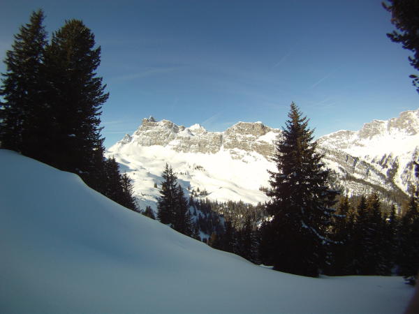 Beim Start schon sonnig. Aufstieg schön einsam, da nicht über Normalroute. Gipfelgrad teilw. veblasen. Giflehang auf Grund der Lawinenlage gemieden, wurde aber trotzdem von anderen gefahren. Trotzdem reichlich Powder vorhaden. Allerdings heute schon sehr viele Touren- und Schneeschuhgeher unterwegs. Daher stark zerfahren.