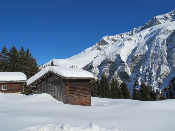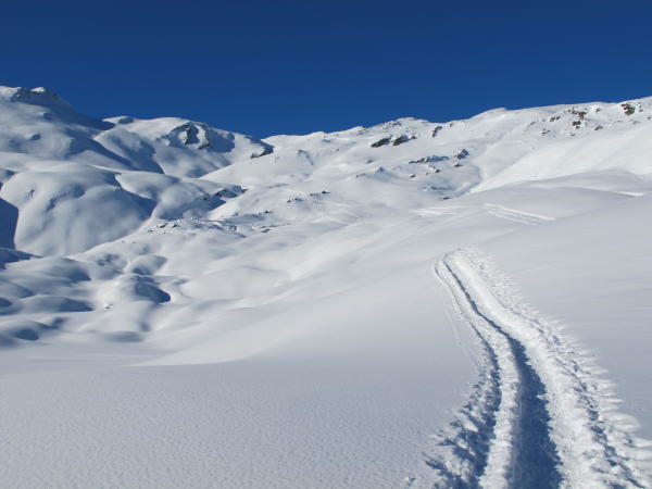 vorwiegend Pulverschnee, besonders in NE Lage. Tolle Abfahrt direkt vom Gipfel des Strätschenhorn.