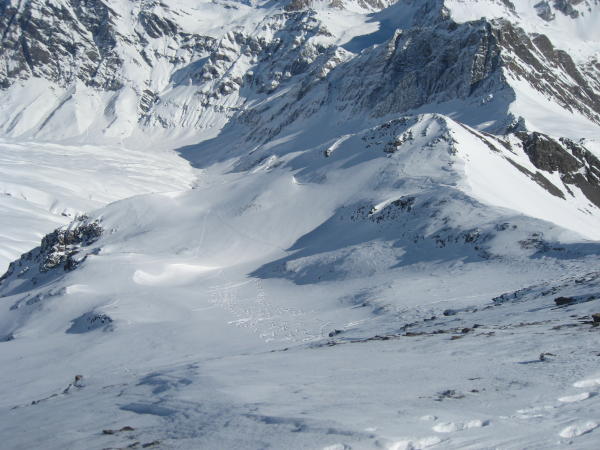 Abfahrt entlang der Aufstiegsroute (Nufenen-Bärenhorn) macht derzeit keinen Spaß... da muss frischer Powder her.