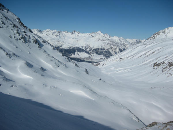 Der steilere Hang zwischen Lei Languard und Lei d'Albris auf ca. 2750m (Foto) erfordert etwas Vorsicht.