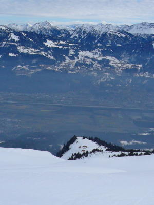 Vom Parkplatz bis 1995m schwerer tiefer Nassschnee. Bei dieser Wärme stufte ich den Gipfelhang für mich als nicht sicher ein, war wohl die einzige, die das so sah.
