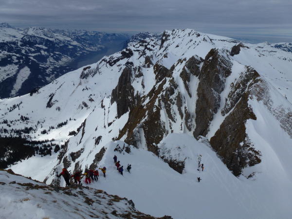 Sehr warm. Vom Skidepot zum Gipfel gut zu gehen. Abfahrt oben Bruchharsch, unten weich.