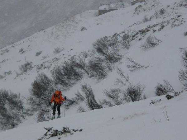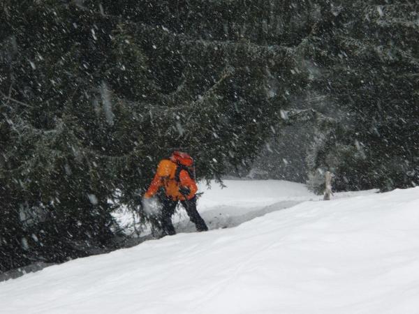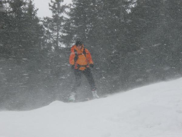 Wir haben auf ca. 2150m abgebrochen: Sicht deutlich verschlechtert. Schlechter Schneedeckenaufbau.