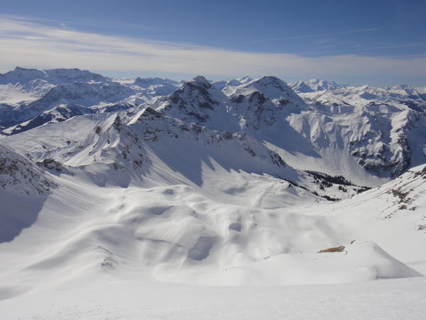 Am Morgen pickelhart gefroren, am Mittag Hänge S-W prächtig angesulzt. Alle andern Expositionen der erwartete üble Bruchharsch. Wenn man konsequent und genau zur rechten Zeit in Sulzhängen abfährt ist es von zuoberst bis etwa 1520m der absolute Knüller!