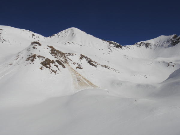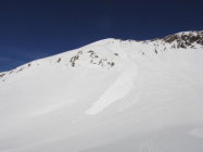 Über der Lawine vom Gipfelhang (vermutlich vom Samstag) hatte es Skispuren (vermutlich von gestern).