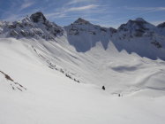 Die gefährlichen Gleitschneelawinenhänge von der Galmschibe im Bereich Oberberg lassen sich problemlos umgehen, indem man s des Bachs zu P.1906 gelangt und dort gegen N aufsteigt - so sind wir dann natürlich abgefahren. Fahrlässigerweise sind wir im Aufstieg einfach den Spuren gefolgt. Lerne: Nie einfach fremden Spuren folgen, sondern selber denken, selber lenken!