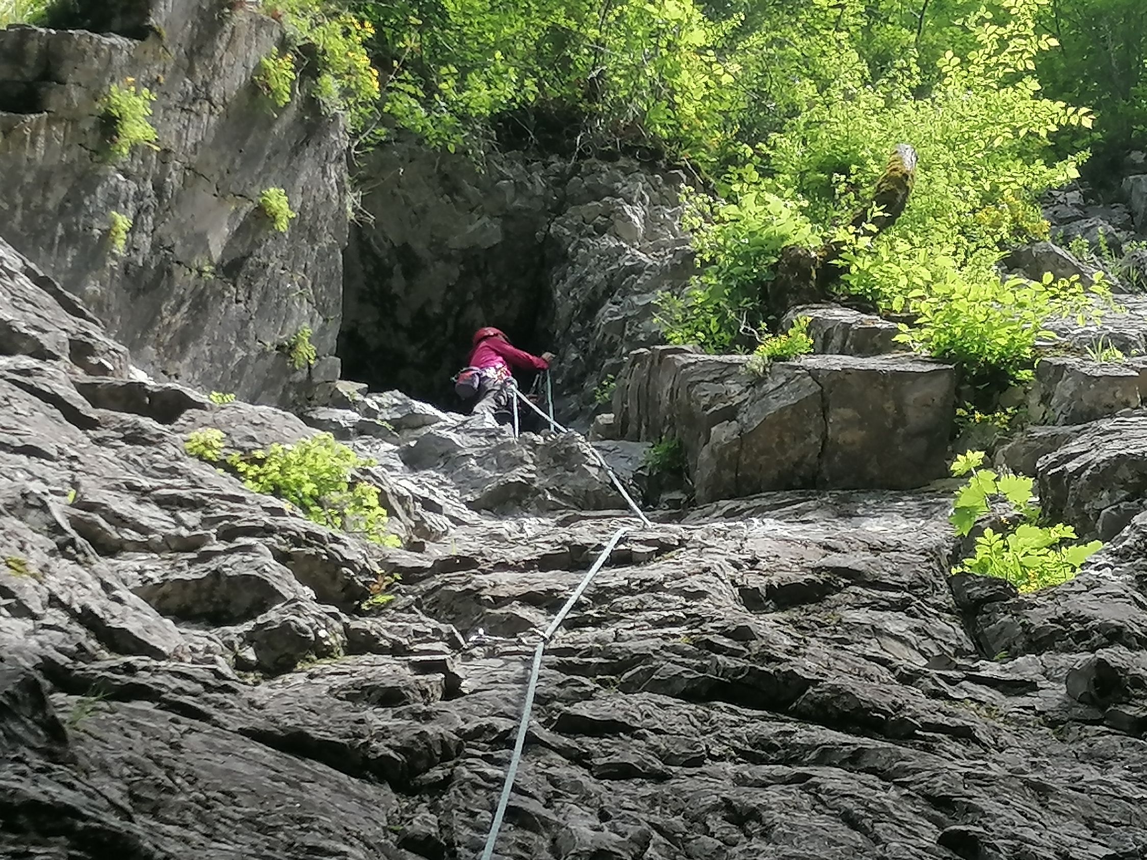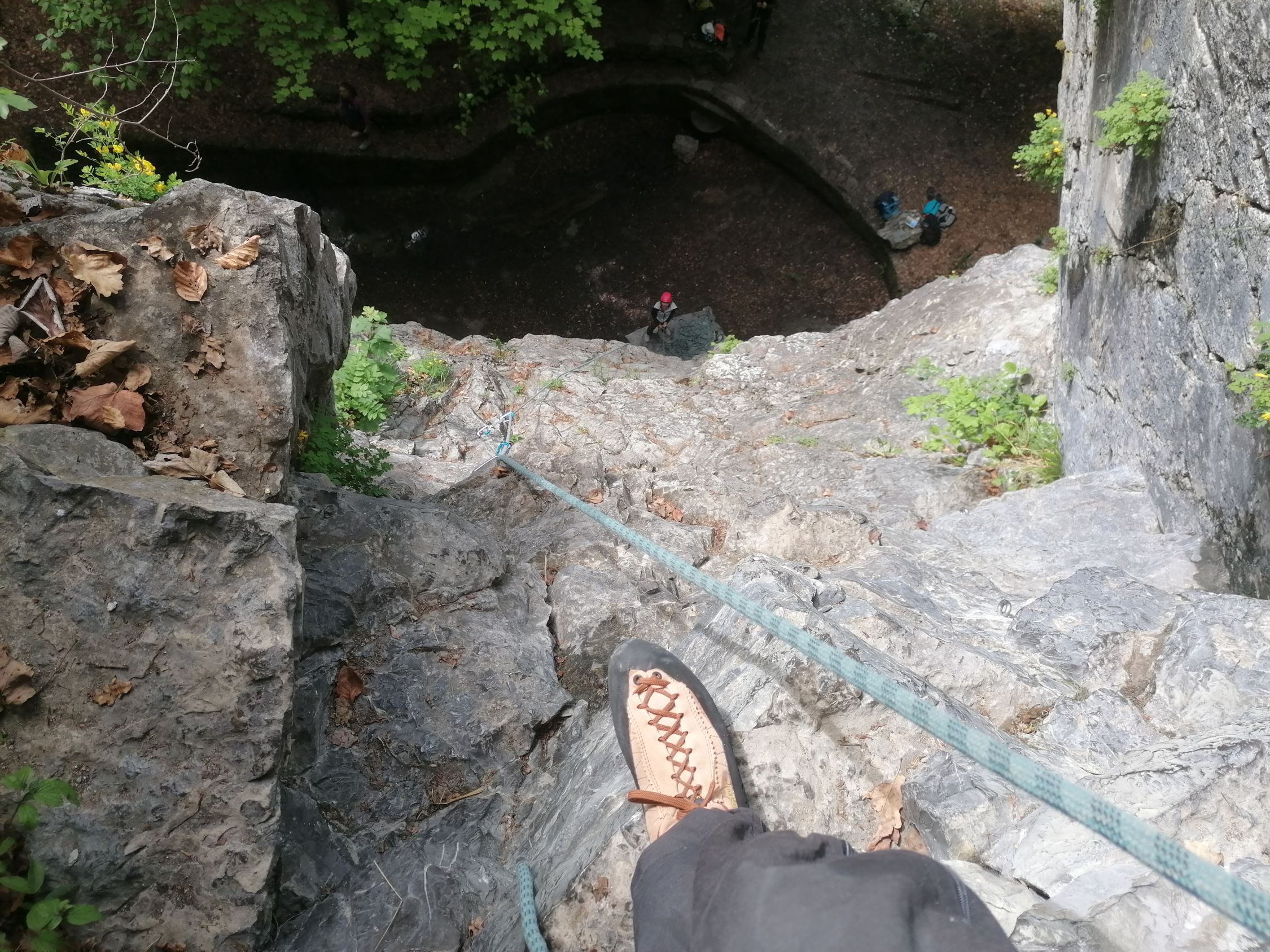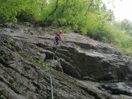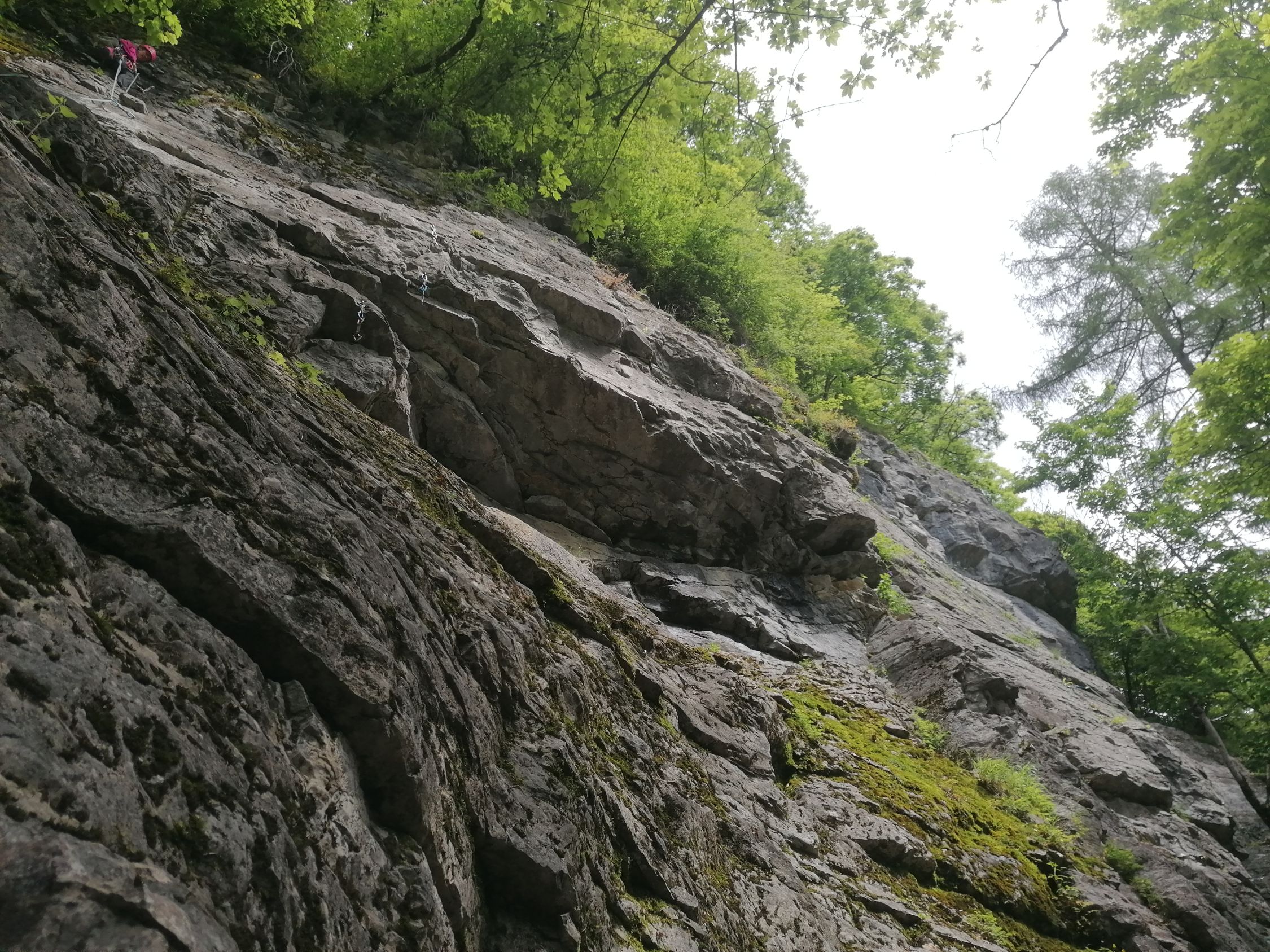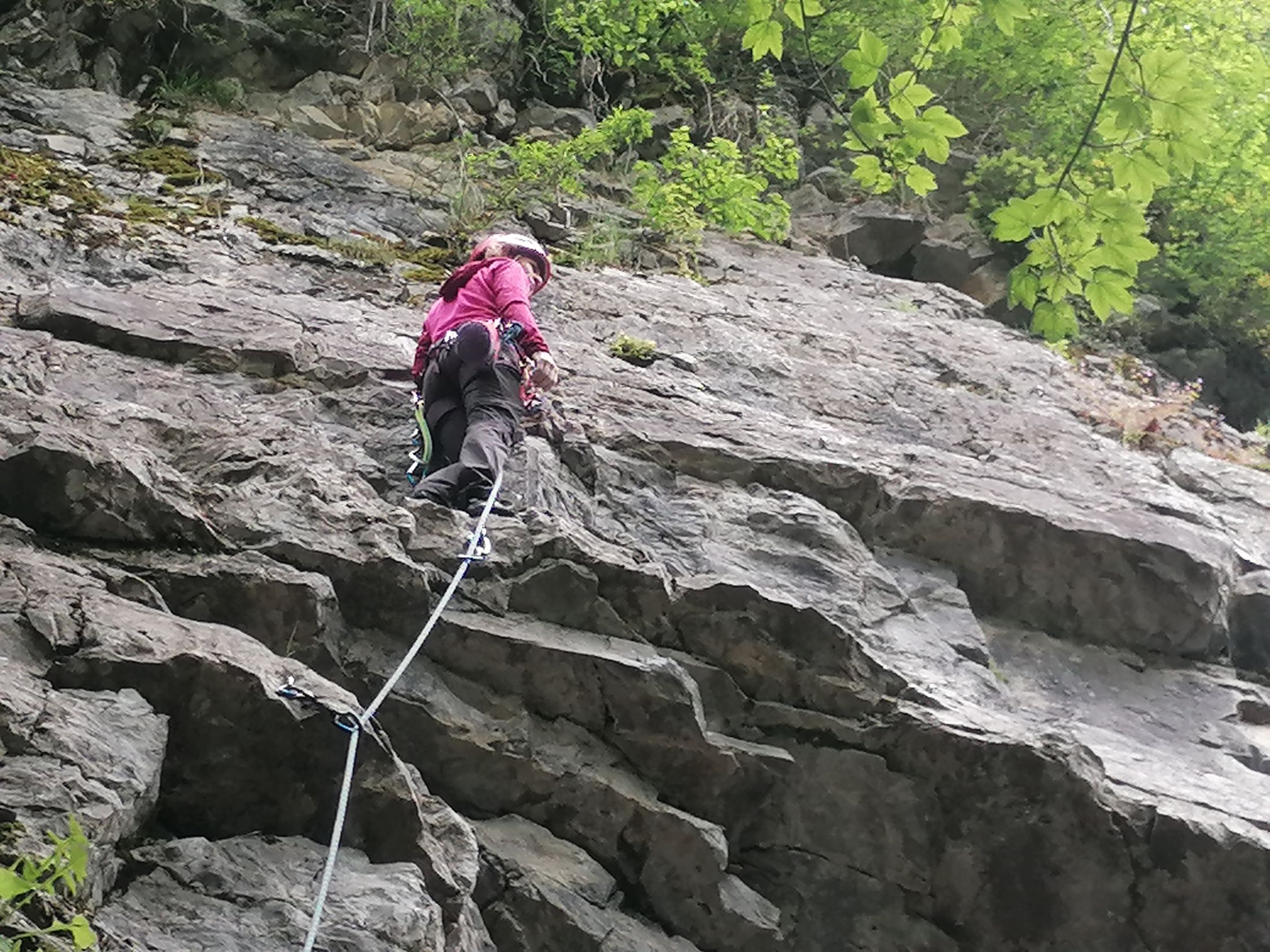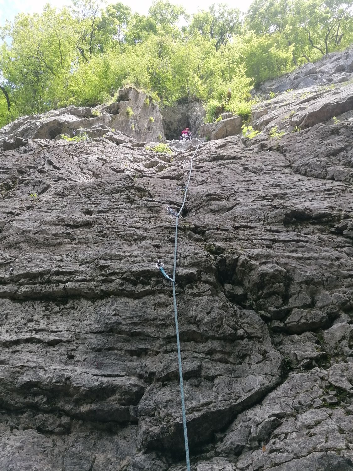 Normale Kletterausrüstung für Klettergarten. Mit 60m Einfachseil