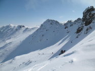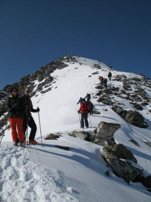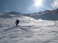 Absolute Hammerverhältnisse' nach ca. 10cm Neuschnee der vergangenen Nacht. Allerdings lag der Neuschnee teilweise auf einer Hartschneeschicht und insbesondere für die Querung zum Augstbordgrat waren Harscheisen unverzichtbar. Gipfelgrat zu Fuss gut begehbar. Abfahrt ab Pt. 2941 direkt runter. TOP.