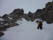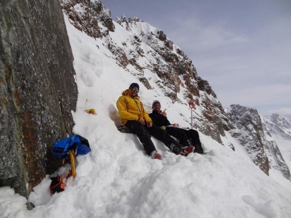Heute Morgen nach Plan in Brail gestartet und bei leichtem Nebel hoch zur Fuorcletta dal Vadret. Einstieg in den SE-Kamin bis zur schluchtartigen Verengung-Abbruch.Bei diesen Verhältnissen zu Krass für uns. Versuch zwei via Südwand auf den Grat: leider 20 Meter vor dem Sattel Abbruch, eine Felsplatte mit nur ein paar Zentimeter Schnee stellte sich uns in den weg. Fazit: Pickel und Steigeisen langen nicht, Seil usw sollte auch in den Rucksack. Aber es hat Spass gemacht und wir werden sicher noch einen V2 durchführen( auf der richtigen Route)