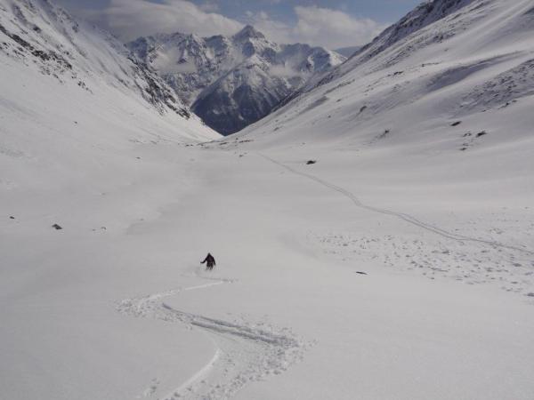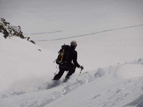 Brail 5cm, Vadret ca 10-30cm Pulverschnee, je nach Verfrachtung. Kamin ab mitte fast schneefrei,unten Wühlschnee in Hülle und Fülle