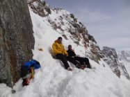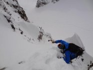 Montag Abend Anreise nach Zernez und gleich noch den Einstieg und die Schneedecke in Brail begutachten,was zur Folge hatte, dass wir unser Fzg im Schnee versenkten und eine halbe Stunde unsere Lawienenschaufeln testen konnten.