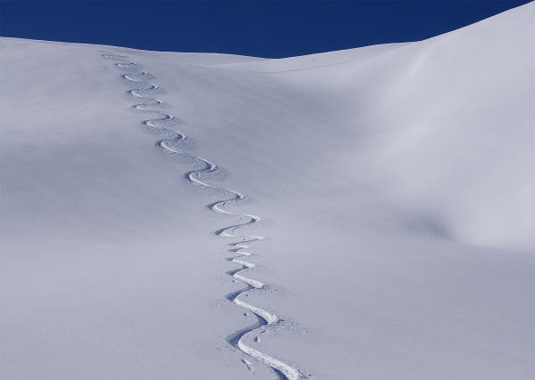 Die Abfahrt erfolgte - auf Anraten des Netten, vielen Dank! - zunächst etwas östlich des Südgrates und dann über wundervolle Pulverhänge bis in die Gegend von Chessi, 2200 m, auf der Südostseite des Hochwang. Von dort stiegen wir zum Nordwestgrat des Ratoser Stein, 2473 m auf - wo wir uns wieder trennten - der Nette wählte die Abfahrt über Goldgruben und über das Pistengelände nach Fatschél - ich über meine Aufstiegsroute zum Pagiger Bleis und am Ende ebenfalls nach Fatschél.