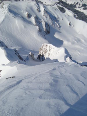 es hat im gantrisch die nötigen paar zentimeter schnee gegeben. auch heute viel wind und daher ablagerungen zum teil hüfttief. der schnee liegt teilweise auf einer sehr harten schicht, daher vorsicht. im couloir teils blindflug, da der hochstiebende pulver die sicht verdeckt ;-)