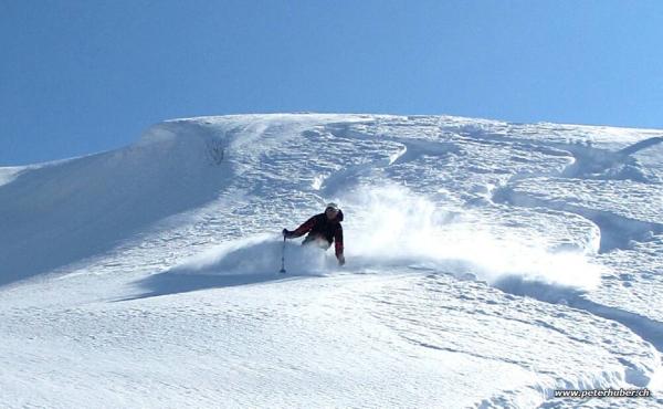 Schönes Wetter. Grosse Teile der Tour liegen morgens im Schatten. Es hat zwischen 25 - 40 cm lockeren Pulverschnee gegeben - in Innerthal nur ca 5 cm! Heute waren nur ca 25 Personen unterwegs. So hatten alle viel Platz für eigenen Spuren. Unterhalb Rinderweid feuchtet der Schnee in der Sonne schon an. Genug Schnee sowohl im Wald beim Aufstieg wie auch bei der Abfahrt.