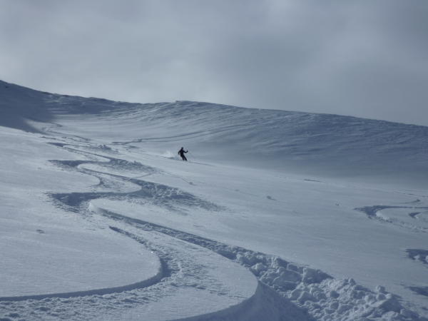 10-30 cm Pulver, N-O Exposition noch Pulver S-O angestrahlte Hänge heute bereits feucht. Abfahrt bis etwa 1900 m.ü.M perfekter Pulver, danach drücken die alten Spuren durch.