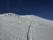 Herrlicher Pulverschnee über zum Teil stark verfahrenem Altschnee. Es hatte heute noch unverspurte Fahrspuren für alle Aufsteiger.