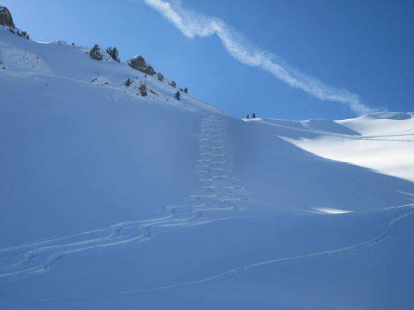 Pulver wird noch etwas bleiben(fast reine N-Abfahrt!) aber immer mehr zerfahren werden