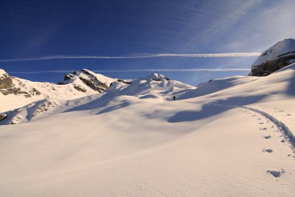 Mit dem angekündigten Temperaturanstieg werden die Verhältnisse wieder frühlingshafter: mehr Sulz und weniger Pulver. In den schattigen Hängen wird sich der Pulver aber noch einige Tagen halten können. Im untersten Teil der Abfahrt werden die Tragepassagen von Tag zu Tag länger.