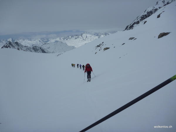 Wir sind über den Gitziälpetli-Grat aufgestiegen. Auf dem Sattel vor dem Gipfel wegen des sehr starken Windes und des sich nicht positiv entwickelnden Wetters umgekehrt. Von dort abgefahren zur Vermighel-Hütte und Aufstieg zum Maighels-Pass. Dort im dichten Nebel gekehrt und entlang der Unteralpreuss nach Andermatt abgefahren resp. im flachen Tal mit sehr starkem Gegenwind 4-5 km "gestöckelt" und dabei auch zahlreiche Lawinenkegel gequert. Oben zum Teil Pulverschnee, häufig jedoch gedeckelt, zum Teil sogar tragend.