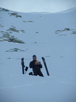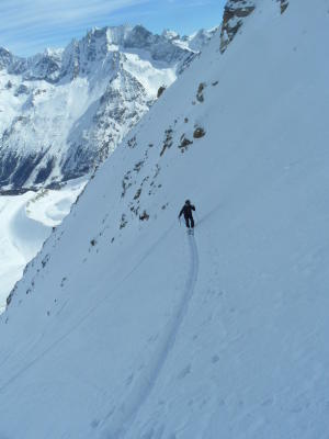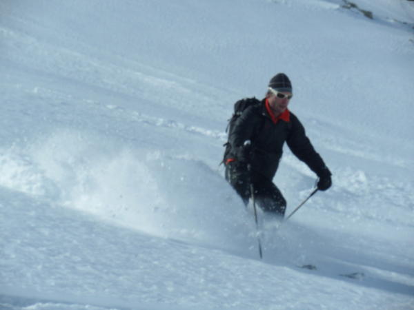 Aufstieg dank viel Neuschnee bis knapp 50hm unter Grataussteig(rechte Rinne)recht gut,etwas tief zum Spuren.Da extrem viel Treibschnee(70-80cm) in Restaufstieg hier abgebrochen.Abfahrt in Oberhammerpuder mit Firstline.Und so noch Zeit für Couli am Rousette am Nami.Erste Bahn 8.30(erspahrt 1 Std. Pistenlatschen),Reicht Zeitlich gut.