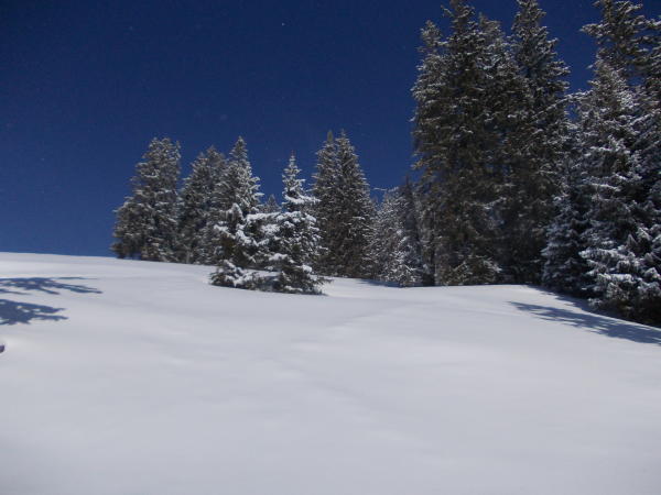 Aufstieg: Beste Verhältnisse. 20cm Pulverschnee auf tragender Unterlage.