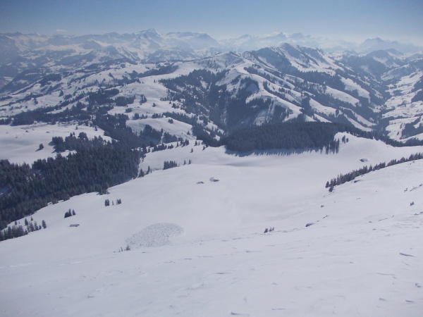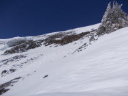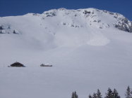 Vor 8 bis 10 Tagen ist eine Grundlawine, Nassschneerutsch 20 Hoehenmeter unter dem Gipfel abgegangen. Siehe Fotos.