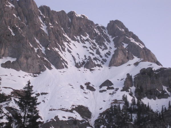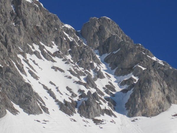 Momentan für diese Route sehr schlechte Verhältnisse! Das Südcouloir und die Hänge darunter sind für den Aufstieg recht gut, aber für die Abfahrt sehr anspruchsvoll! Sehr ruppig und mit Lawinenschnee durchzogen. Da diese Tour um spätestens 11.00 im Alpetli beendet sein sollte, muss man früh starten!