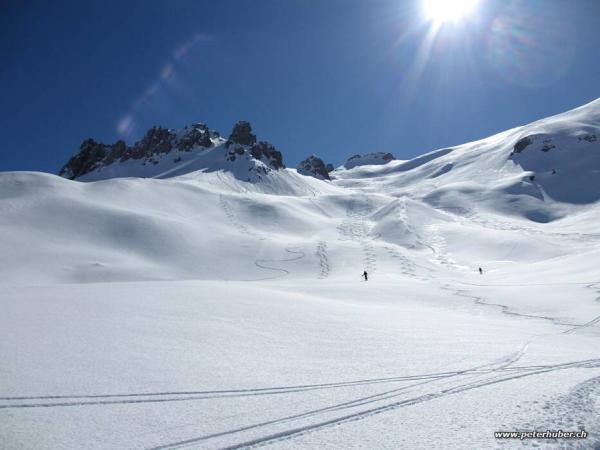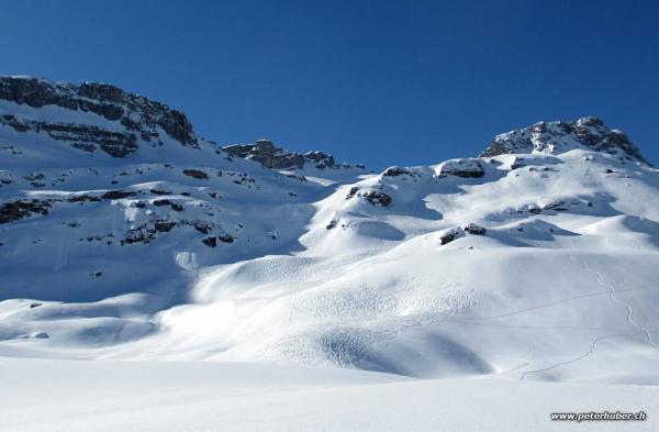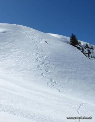 Für morgen sicher noch zu empfehlen. Zwischen Balmer Grätli und Ruossalper Chulm hat es noch viel Platz für weitere Pulverschneespuren.