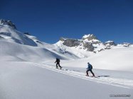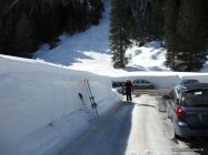 In Sali hat es 2 m Schnee! Parkplätze sind aufgefräst - für einen Wochentag hat es gut gereicht. Der Schnee war beim Aufstieg hart gefroren, die Spur vereinzelt etwas glasig. Bei der Abfahrt haben wir oft tollen Pulverschnee ca. 10 cm gefunden. Gleich daneben gab es auch schönen Sulzschnee. Es wechselt sehr kleinräumig. Ganz unten unterhalb Gross Gaden hat es für die Abfahrt auf der Aufstiegsroute genug Schnee, jedoch war es mit den vielen Spuren recht ruppig - die Abfahrt via Alpstrasse wäre angenehmer gewesen.