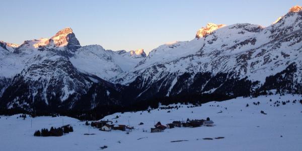Die weitere Abfahrt zur Alp Flix geht in Richtung Westen. Wenn man ein wenig die Sonnenhänge suchte, war auch dort der Schnee gut fahrbar, zum Teil sogar schön aufgesulzt. Auf der Schlussfahrt nach Sur muss man aufpassen, dass man nicht mit einem Motorschlitten kollidiert. Da hätte man definitv eine 2 auf dem Rücken...