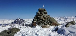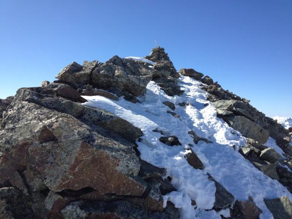 Oben auf dem Gletscherplateau habe ich noch vier Leute angetroffen, die von der Jenatschhütte her aufgestiegen sind. Zwei von ihnen stiegen zum Gipfel. Durch den Gipfelhang führt eine gute Spur, der Felsgrat am Schluss war auch kein Problem. Pickel und Steigeisen sind für diese Tour aber auch für die Normalroute empfehlenswert.