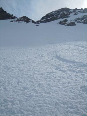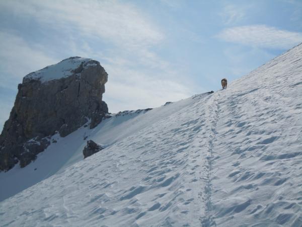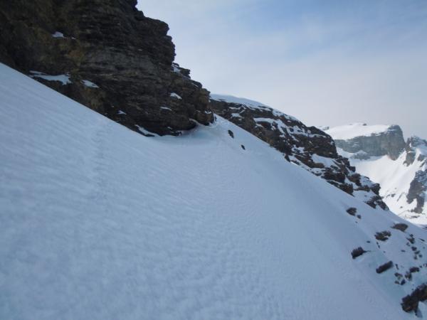 Die Querung vom Rossgrat zum Südwestgrat des Seestocks ist momentan mit Harsteisen und guter Skitechnik gut zu machen.