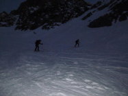 Bei Start um 2:30 in Tierfehd war Schneedecke im unteren Streckenteil trotz sternenklarer Nacht nicht durchgehend gefroren (va im Bereich Vorder&Hinter Sand nicht). Schneerus in mitte kurze blanke Stelle (m.E.Steigeisen&Pickel nötig), Rest Trittschnee.