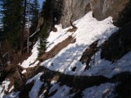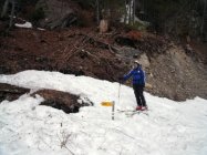 Am Gipfel des Alvier (Exposition Südost) haben sich mehrere Nassschneelawinen bis auf den Grund abgelöst. Aufgrund der Schneehöhe erreichen selbst kleine Lawinen ein beachtliches Volumen.