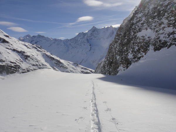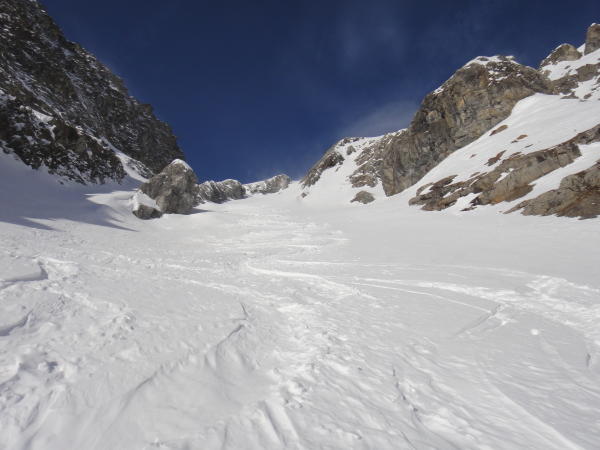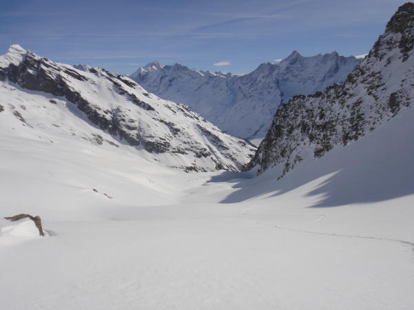 Wir "durften" noch 2 verirrte Türeler aus Frankreich durch das auch nicht alle Jahre befahrbare Couloir lotsen, welche w der Tellispitze abgefahren sind, weil sie meinten, es sei die Chrindelspitze...