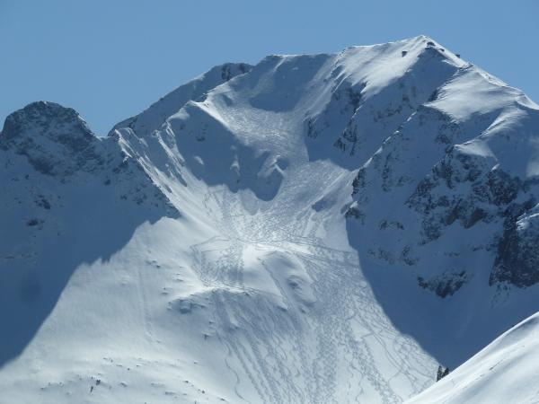 Gustispitz (2074m): Abfahrt Gipfelcouloir mitte - Normalaufstieg