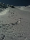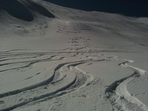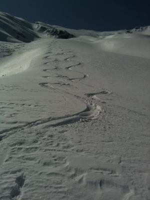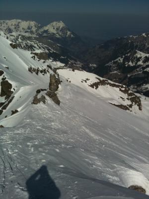 In der Abfahrt im obersten Bereich Presspulver und nicht sehr schön zu fahren. Ab ca. 2500 müM ganz im östlichsten Bereich des Hohtürlihangs abgefahren. Dort bester Pulver bis hinab bis zur underen Bundalp.