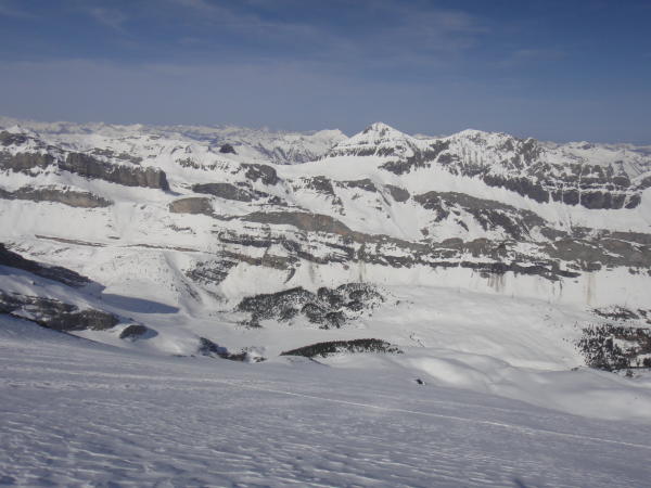 Unterhalb 2300m am Morgen Deckel, am Nachmittag feuchter Schnee. Darüber meist schöner Pulver mit gelegentlichem leichtem Deckel.