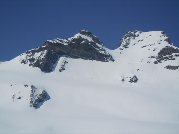 mit zwei kürzeren Gegenanstiegen,insgesamt ca.150hm. Abfahrt über Chalchhornlücke. Erstesmal zu P.2608m zweitesmal zu P.2542m NE-Hang Richtung Jetzloch.