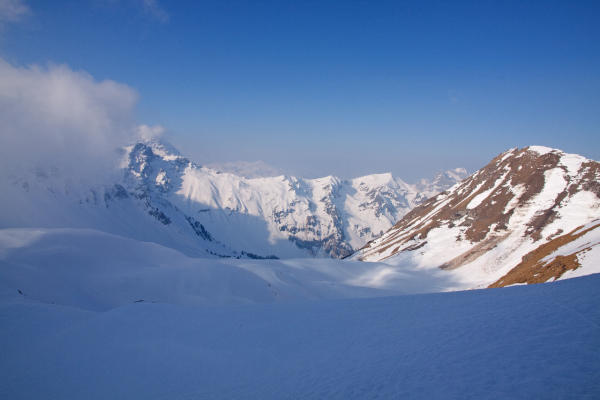 Route immer noch gut eingeschneit. Es hat noch viel Schnee in der Chiley. Abfahrt ca. 11.30 - Gipfelhang herrlich, mittelteil gut + wenig angesulzt.