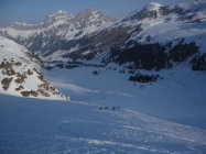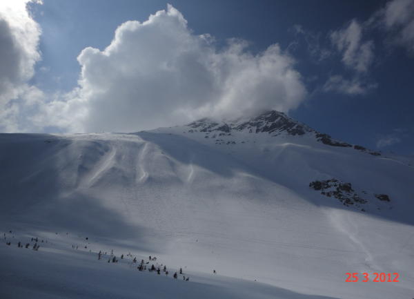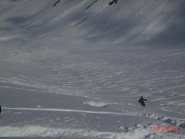 Abfahrt oben hart und ruppig, zwischen 2500 und 2ooom pulver, ab da bis unten leicht aufgesulzt, zur zeit sehr gute Verhältnisse.