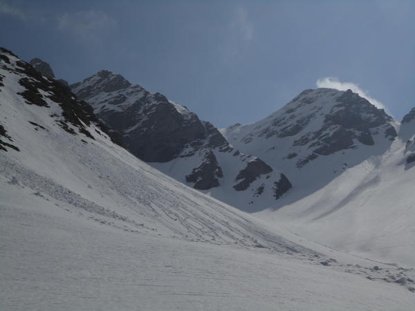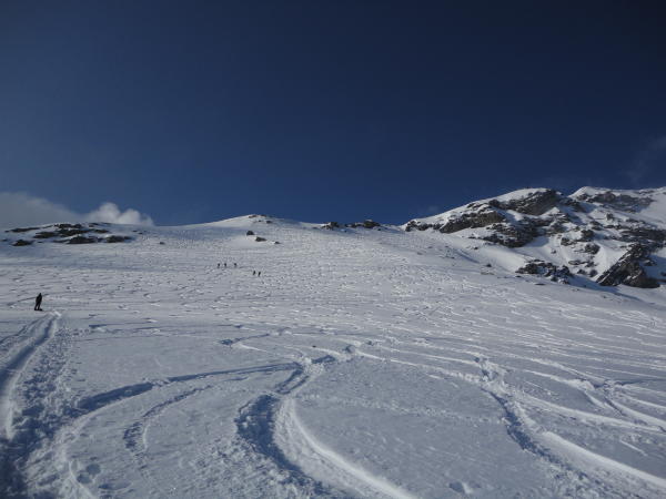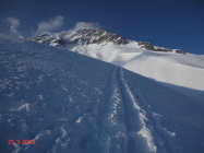 im Aufstieg bis ca 2000m tragende schicht, dann pulvrige feste Spur. Oberh. P.2597 etwas vereist, aber gut begehbar.